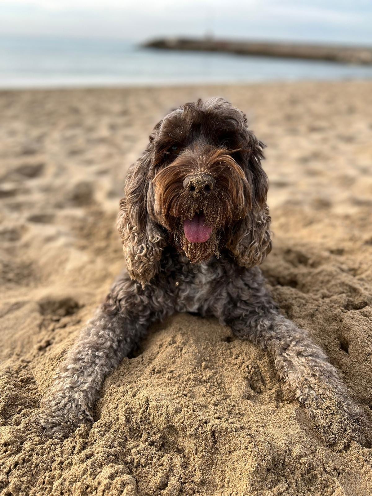 I borrow my friend’s dog, Woofy, cos she always sniffs out the good stuff and coats me in sand when she digs holes…