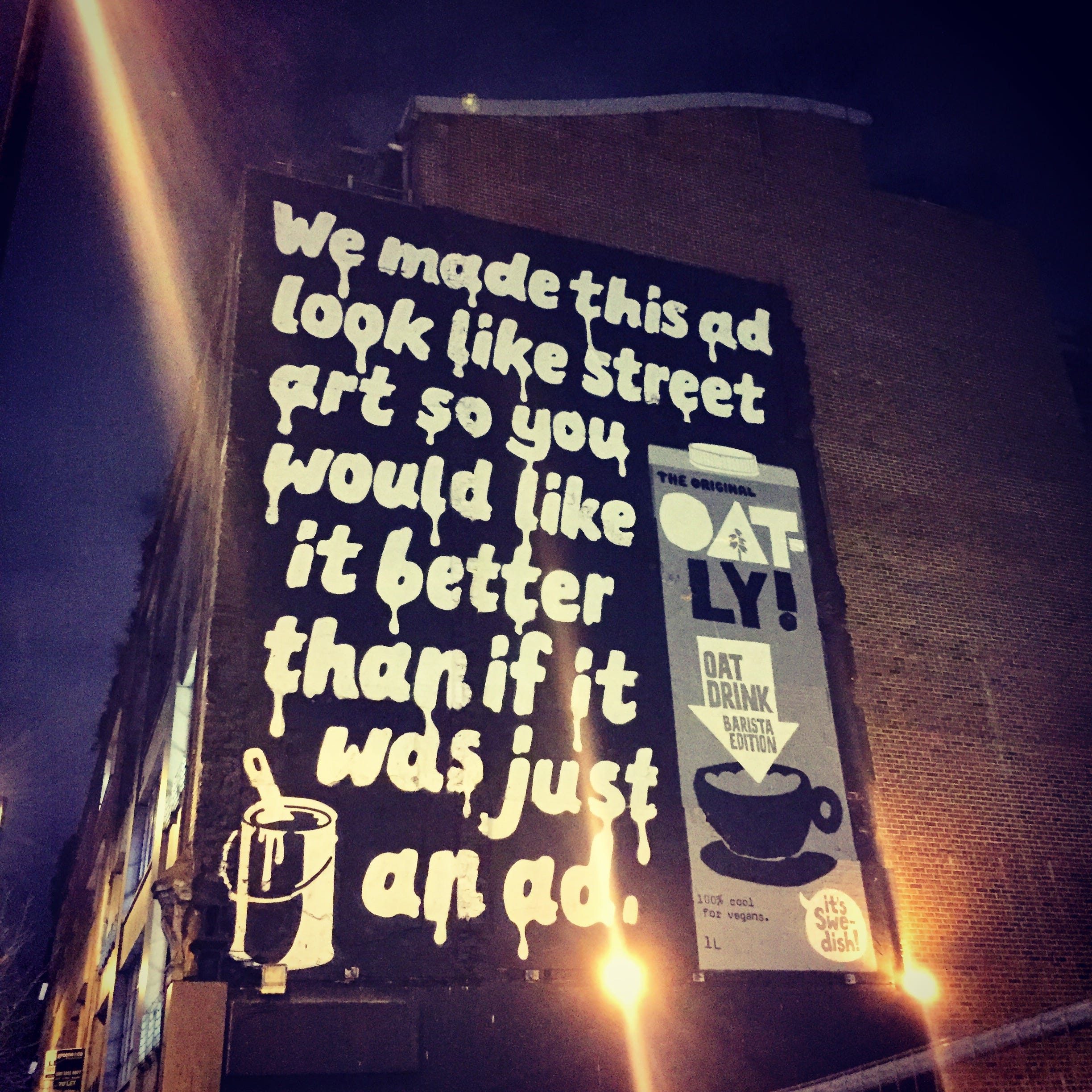 I look out for ads, like this one for Oatly from a few years ago: